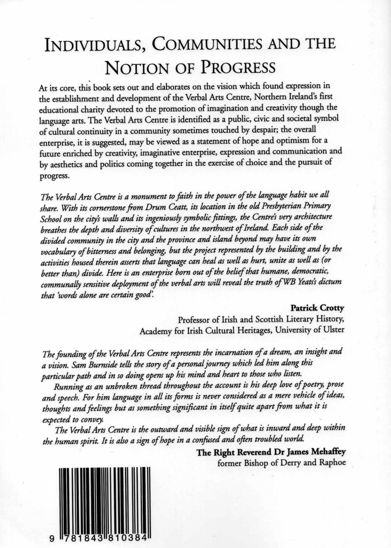 Contains a detailed account of the intellectual underpinnings of the development of some ideas them the establishment and restoration of the verbal arts centre building, together with its commissioned artwork.