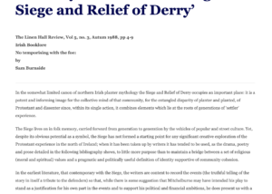 'Literary Materials Relating to the Siege and Relief of Derry' The Linen Hall Review, Vol 5, no. 3,