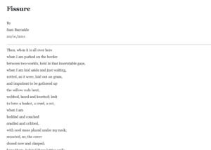 'Fissure' By Sam Burnside 20/01/2011 Then, when it is all over here when I am parked on the