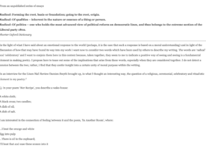'The Radical and the Celebratory' ‘Defining the Inheritance’, Sam Burnside interviewed by Damien Smyth, Linenhall Review, Volume 6, Number 3, Winter 1989,