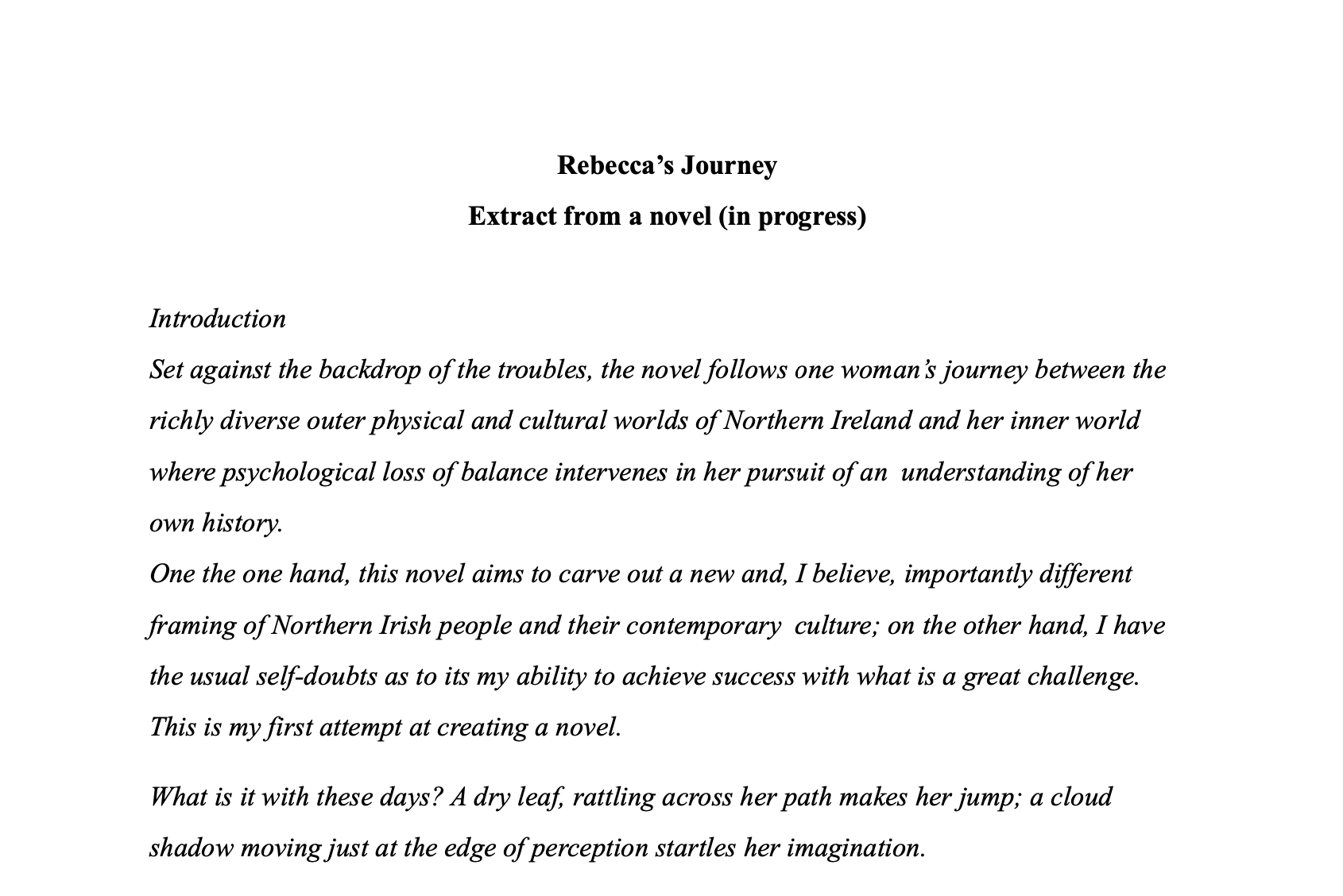‘Rebecca’s Journey’, Extract from a Novel (in progress)