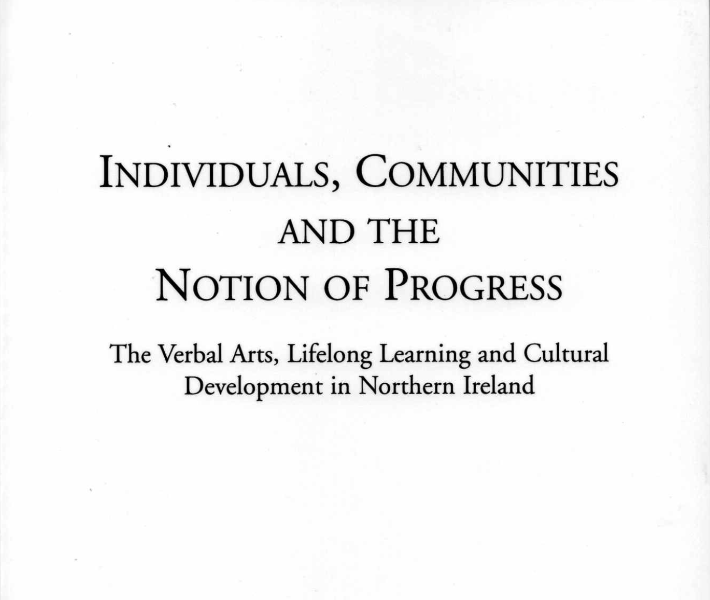 LauraAdmin2021-06-15T11:12:49+00:00'Individuals Communities and the Notion of Progress' A discussion of some of the ideas that exercised the author during three decades of teaching literature and then during the establishment of the Verbal Arts Centre in Derry-Londonderry Contains a detailed account of the intellectual underpinnings of the development of some ideas them the establishment and restoration of